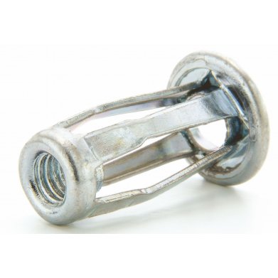The JACK NUT threaded insert is an economical blind fastener designed for assembly-line use in thin, soft, or brittle materials. When tightened, the body collapses to form four legs which grip the inside of the mounting surface, leaving a permanent, reusable threaded insert.