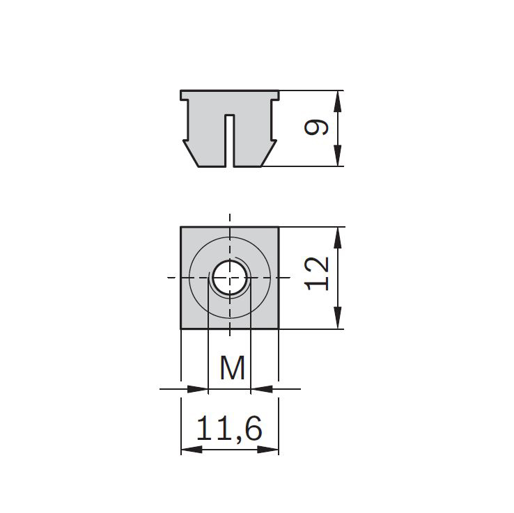 Straddling Nut to suit 10mm slotted Bosch Profile.