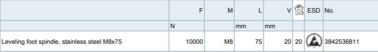 | Description | Genuine Bosch Rexroth M8 x 75mm Leveling Foot Spindle |