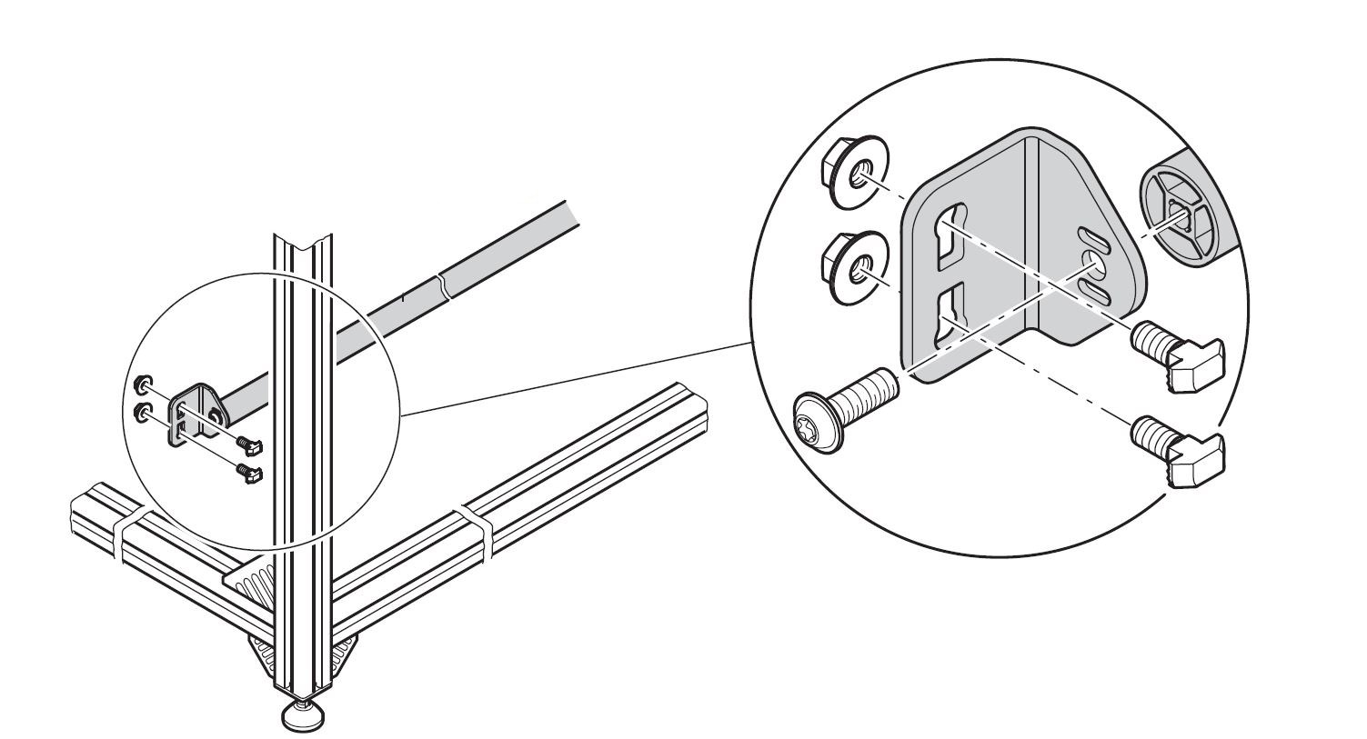 Mounting bracket set enables you to connect a tubular frame profile with a 28mm outer diameter to a 10mm slotted aluminium profile.