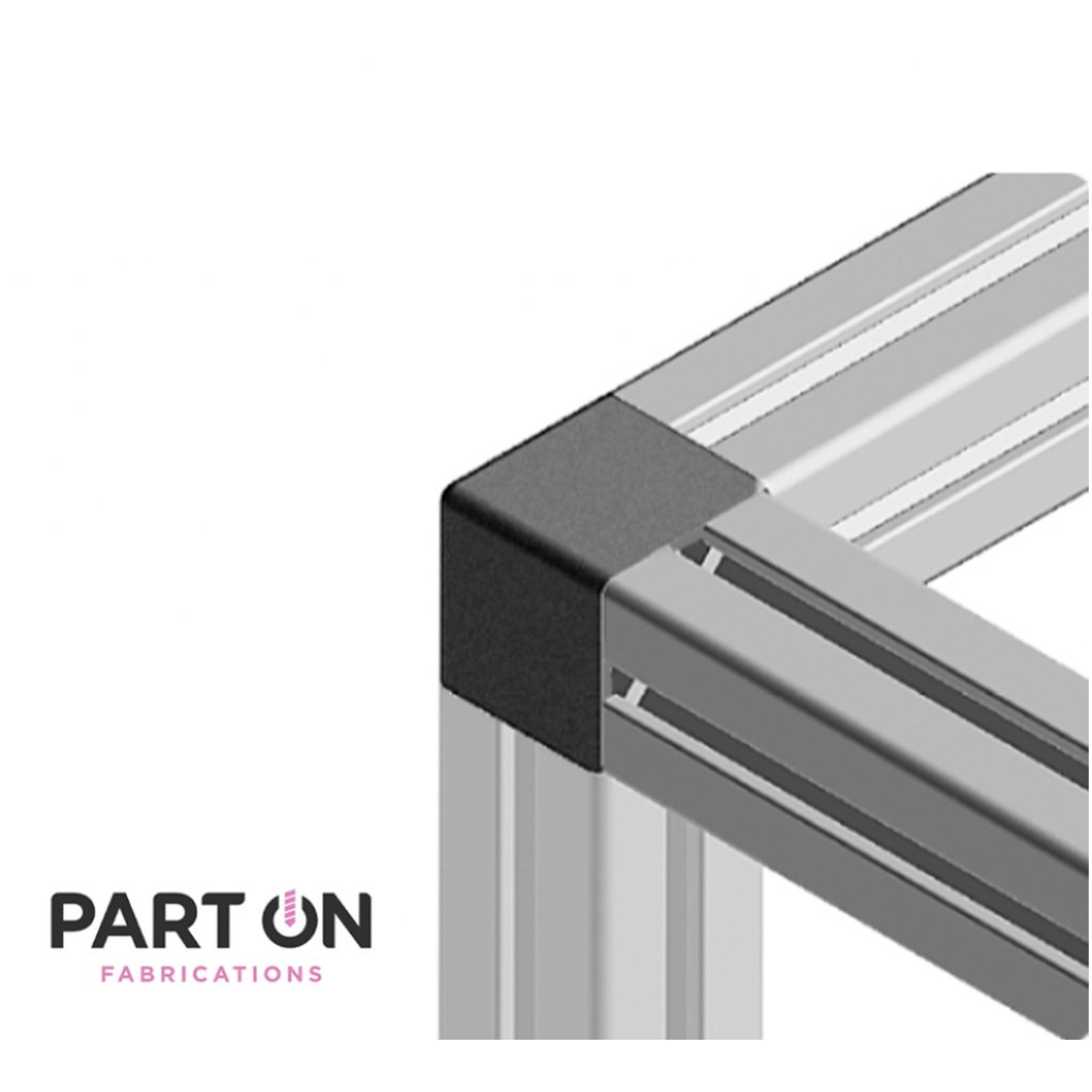 Corner brackets are attached to the central bore of the profile with self-tapping screws. Domed or Cubic caps improve appearance and protect against injury on the profile ends.