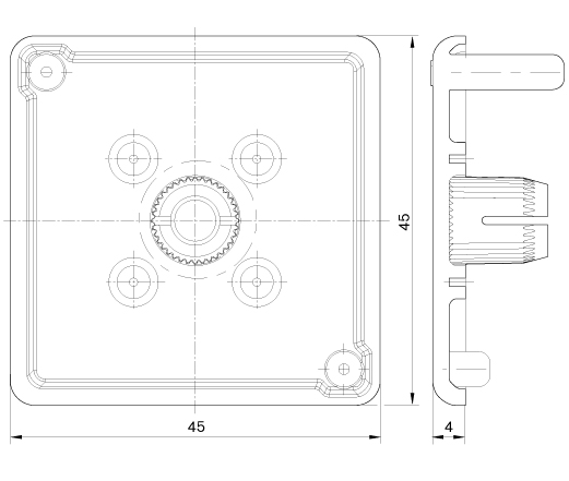 End Cap to Suit 45 x 45 Aluminium Profile.