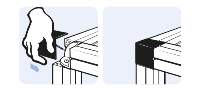 Corner brackets are attached to the central bore of the profile with self-tapping screws. Domed or Cubic caps improve appearance and protect against injury on the profile ends.
