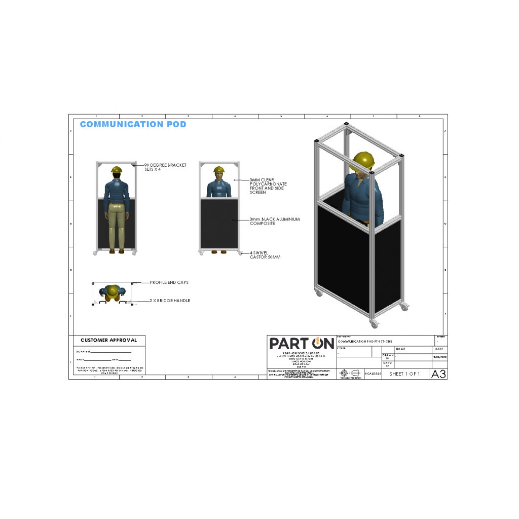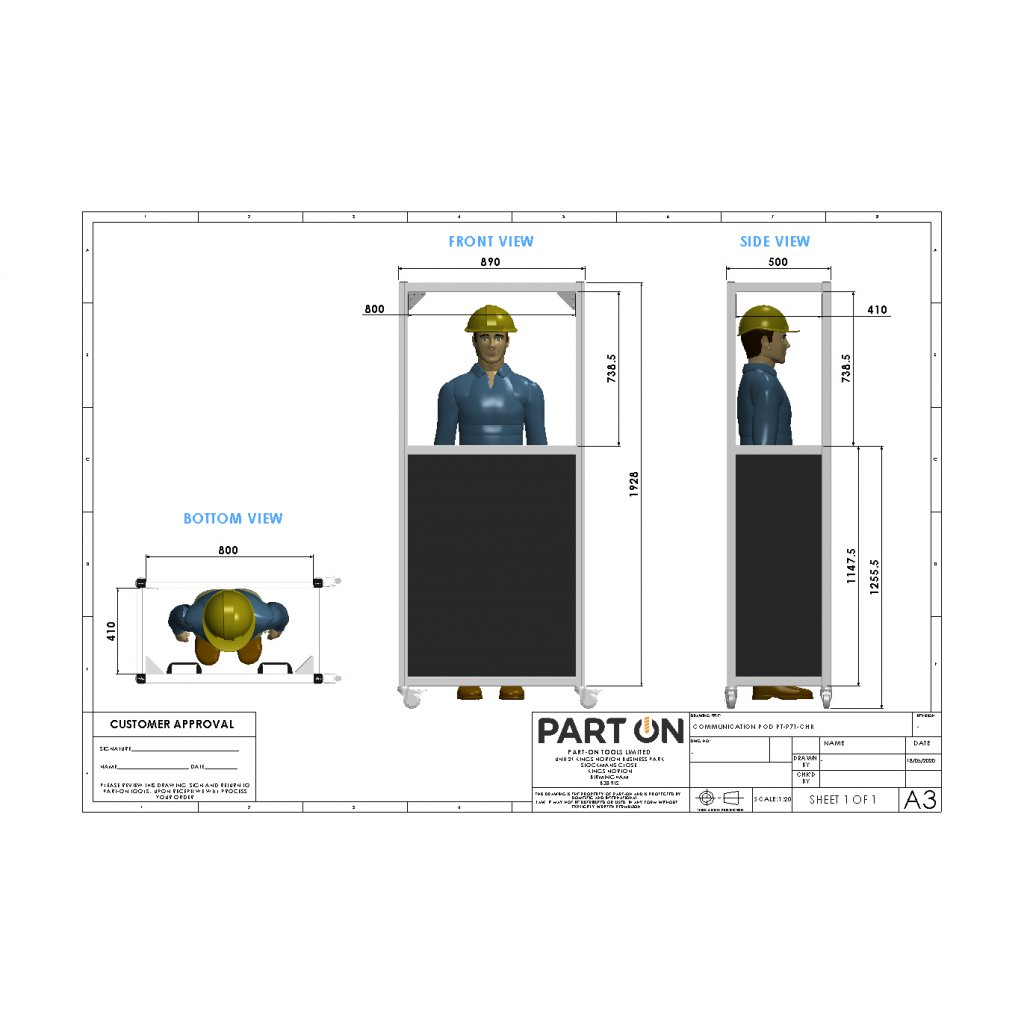 The Mobile Communication POD sits on four castors for ease of mobility.. Optional size/shape versions can be designed as required, please contact our sales team.