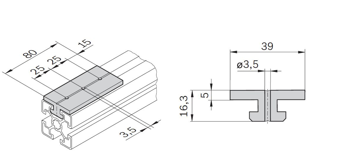 Flat Sliding Element to suit 10mm slotted Bosch Profile.