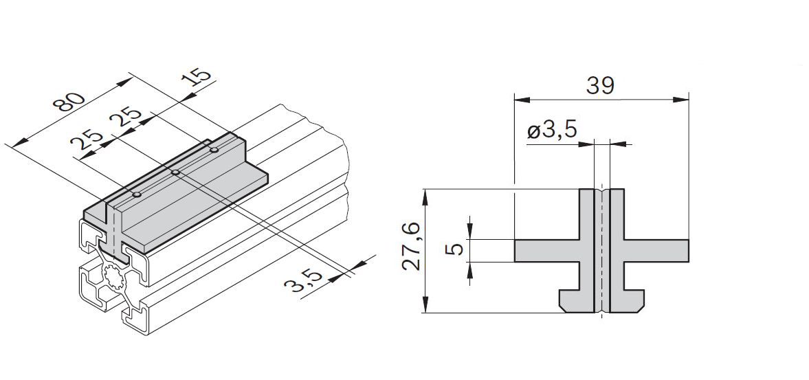Centered Sliding Element to suit 10mm slotted Bosch Profile.