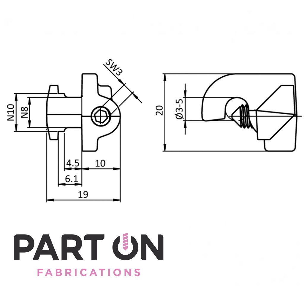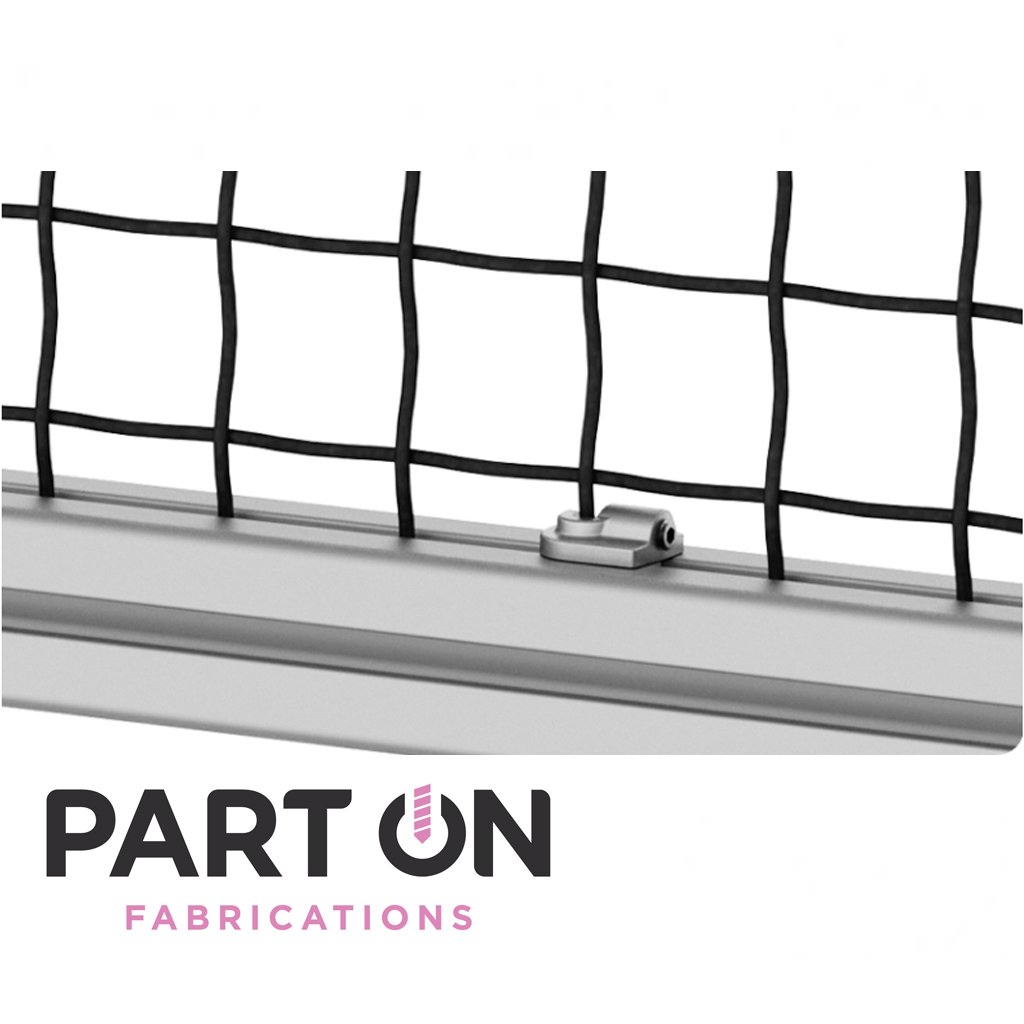 Part-On Range Wire mesh clamp suitable for 8 / 10mm slotted Aluminium Profile.